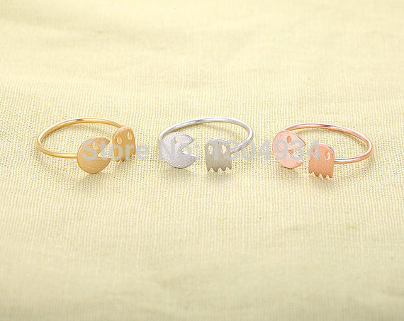 10pcs 2016 New Animal and Ghost Adjustable Stretch Cute Pac-Man and Ghost Rings Women Simple Cool Midi Wholesale Rings R011