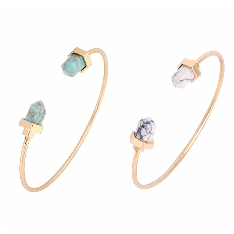 18K Gold Plated Turquoise Bullet Healing Point Bracelets & Bangles Faux Marble White Howlite Bracelet Bangle for Women G075-76