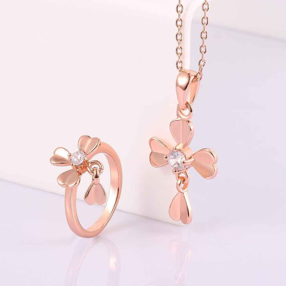 18k gold plated jewelry set clover necklace+ring bijoux SKGS037