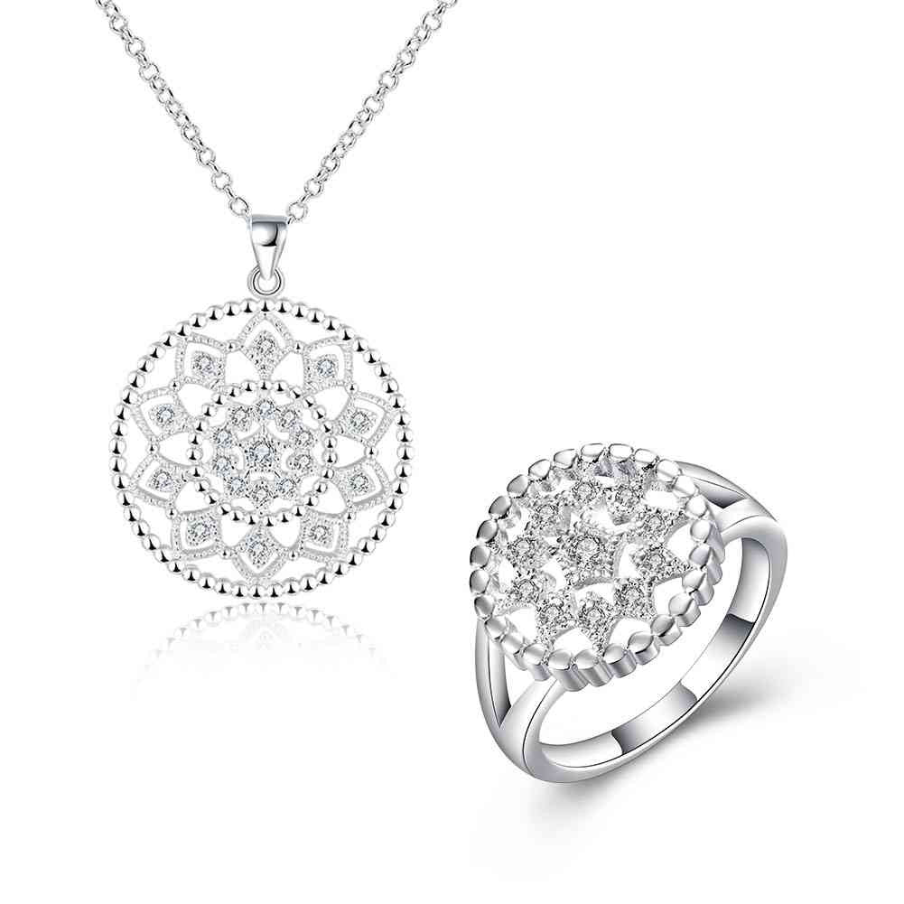Lose Money Promotions silver plated jewelry sets Circle star Ring+ Necklace+Earrings Sets for women oso HBS025