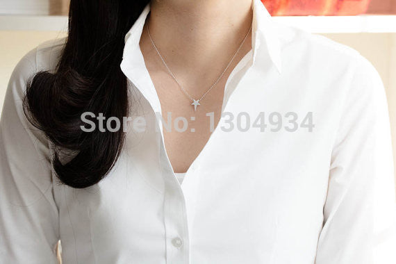 10pcs/lot Gold&Silver Anniversary Cute Star Pendant Necklace Small Tiny Cute Charm Wholesale Female Necklace N085